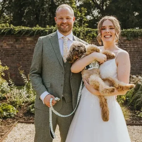 Your dog is part of your family so it's only natural that you'd want them there. Our goal is to create precious lasting memories of how your beautiful pooch played a part in your big day and acknowledge the bond you share with them. Our expertise enables us to tailor our services to meet your vision whilst prioritising your dog's welfare. Whether you dream of your dog carrying your rings down the aisle, being your flower pup, greeting guests, joining in your first dance, or simply starring in your wedding photos - we'll make it happen, your way.